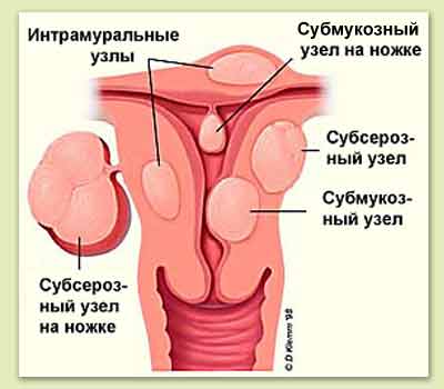 Узлы могут располагаться в различных слоях стенки матки. Выделяют три основных типа: